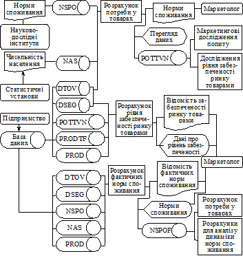 Рис. 3.2.6. Інформаційна модель розв’язання задач з розрахунку потреб у товарах та аналізу забезпечення ними