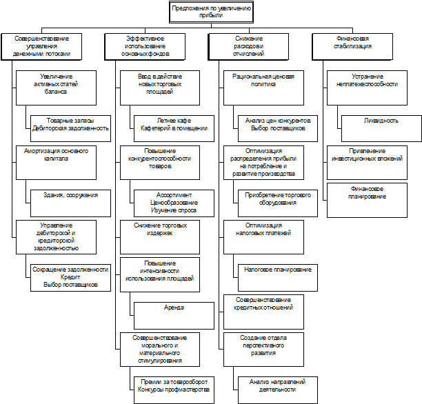 Таким образом, проведенные расчеты показал, что в результате внедрения только одного из предложенных мероприятий – расширение присутствия предприятия на рынке за счет открытия нового отдела в торговом центре – позволит увеличить прибыль предприятия на 1440 тыс. руб. за год и в результате сделает предприятие прибыльным.