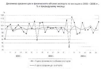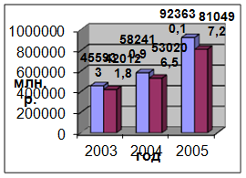 Происходит увеличение экспорта товаров и услуг. За 2004 г. темп роста составил 132,7 %, при плане 107,1 %, а за 2005 г. - 144,6 % при задании 113,5 %.