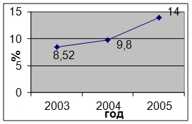На предприятии наблюдается также повышение рентабельности. За 2004 г. она составила 13,2 %, что больше на 1,7 % по сравнению с 2003 г.