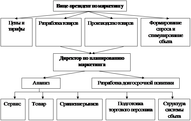 Организационная структура управления отделом маркетинга, в основу которой положен товарно-функциональный принцип, имеет следующий вид.