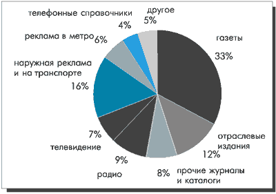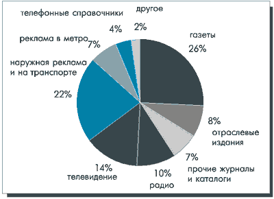 [21] Данные 2000 г. (Канаев Д.А. Обзор рекламного рынка Санкт-Петербурга. //http://www.marketing.spb.ru/mass/pri/2001/03.htm.)