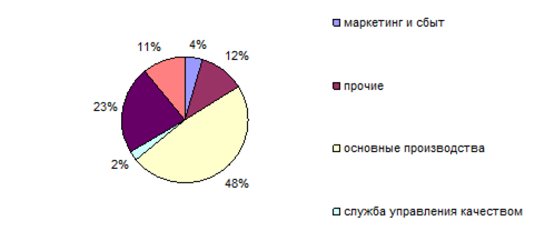 - Снижение уровня общезаводских и внепроизводственных расходов, составляющих в структуре себестоимости товарного выпуска 14%, а также цеховых расходов (16,3%). Планируется корректировка внедренной в 2003 г. на предприятии системы управления затратами, а также повышения результативности процесса бюджетирования путем реформирования системы управления и организационной структуры.