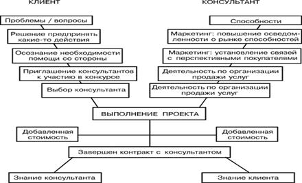 Консалтинговые услуги чаще всего осуществляются в форме консалтинговых проектов и включают в себя следующие основные этапы: