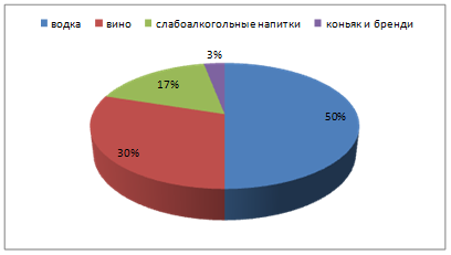 Структура потребления выглядела следующим образом: водка - порядка 50% продаж, вина - 30%, слабоалкогольные напитки - 17%, коньяки и бренди - 3%. В сегменте водочных изделий основная тенденция - активный рост среднеценового и премиального сегментов. Последний во многом рос за счет импорта. По данным Федеральной таможенной службы (ФТС), импорт водки в 2009 году по сравнению с 2009 годом увеличился на 210%. В премиальных и среднеценовых категориях значительно усилили свои позиции украинские производители, на долю которых пришлось более 98% импорта. В стоимостном выражении доля на российском рынке таких украинских компаний, как УВК Nemiroff и "Союз Виктан", достигла соответственно 2% и 1,7%.