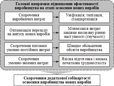 Рис. 4. Основні напрямки скорочення витрат на освоєння нових виробів