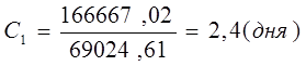 Час звернення (В) показує число днів, за які був реалізований середній товарний запас в минулому періоді, і обчислюється за формулою: