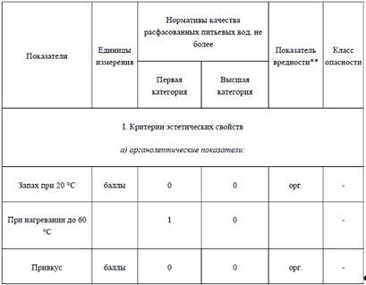 Номенклатура показателей безопасности и безвредности расфасованной воды