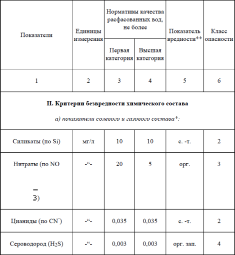 Безвредность воды по химическому составу определяется ее соответствием нормативам (по более чем 60 параметрам). Вот некоторые из них: