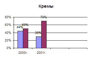 По данным табл.1.1. видно, что в 1998г. прирост отрицательный равный -12%, в 1999 наблюдается резкий прирост, равный +36%, однако в 2000 г. рост объемов продаж косметических товаров замедлился.