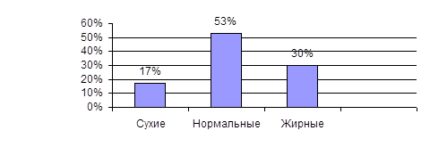 В то же время обследования показали, что среди опрошенных потребителей жирный тип волос имеют около 30% (рис. 2.4).
