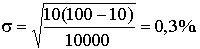 Это означает, что с вероятностью 68% (одно стандартное отклонение) можно утверждать, что результат лежит между 9,7 и 10,3%, а при допустимой вероятности 0,95 - между 9,4 и 10,6% (два