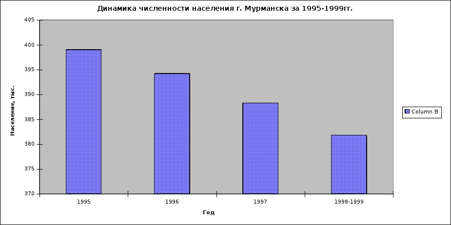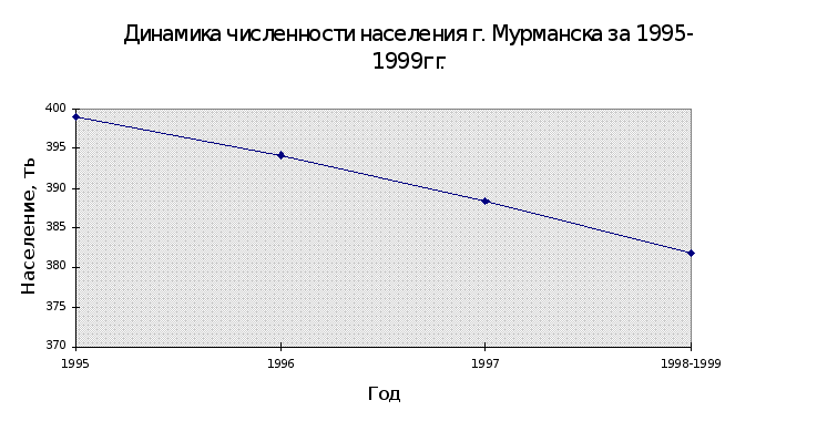 Динамика численности населения г. Мурманска за 1995-1999гг.