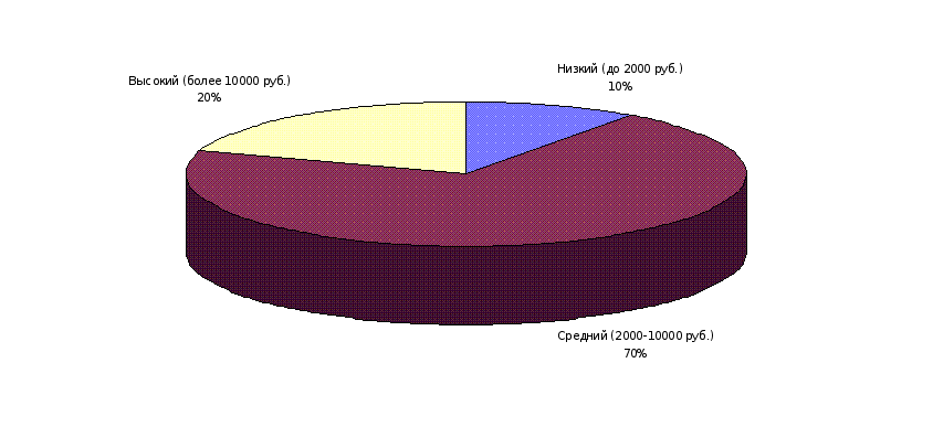 В ходе сегментации рынка был выбран целевой сегмент для реализации трикотажных изделий. Это сегмент зрелых людей (мужчин и женщин) в возрасте от 35 до 50 лет, люди со средним уровнем дохода. Сегменты по возрастному признаку и по уровню дохода представлены на схеме (рис. 3.2 и 3.3 сделать на одном плакате. Необходимо обязательно учитывать и стиль одежды, который предпочитают потребители.