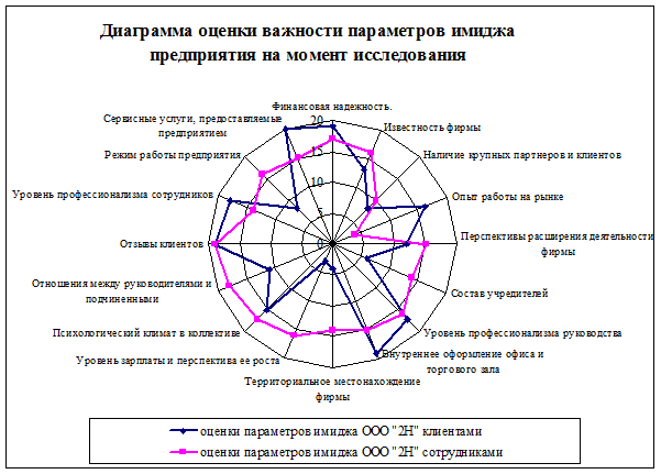1.3. Радар «Оценка важности параметров имиджа предприятия для клиентов и сотрудников»