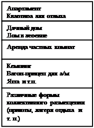 · традиционно иностранные туристы считаются в основном клиентами предприятий гостиничного хозяйства, в то время как российские граждане стремятся организовать свой отпуск более свободно и независимо от условностей проживания в гостинице. Таким образом, можно предположить, что основная клиентура дополнительных средств размещения – внутренние туристы;