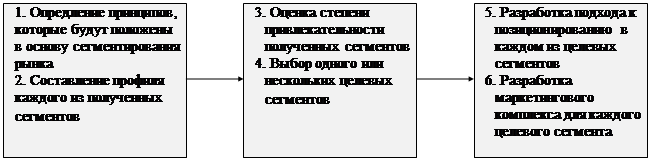 Рис.1. Шесть этапов сегментирования рынка, выбора целевых сегментов и поционирования в них товаров и услуг.