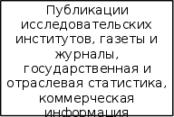 Кабинетные исследования осуществляются на основе вторичной информации - официальных печатных источников, и дают общие представления о: