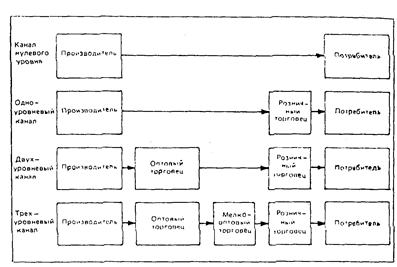 Существуют каналы и с большим количеством уровней, но они встречаются реже. С точки зрения производителей, чем больше уровней имеет канал распределения, тем меньше возможностей контролировать его.