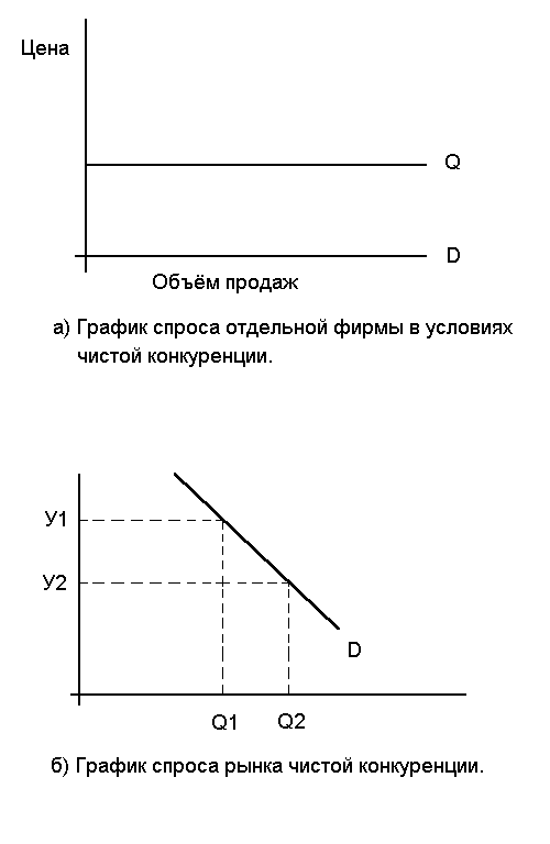 Рис. 1. Графики спроса отдельной фирмы и рынка чистой конкуренции