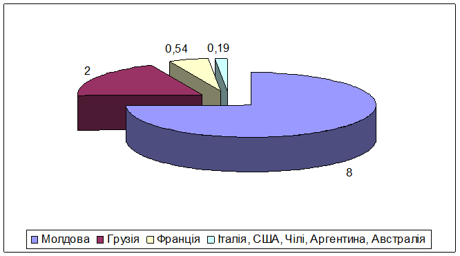 На українському ринку за обсягами ввезення виноградних вин домінують Молдова, Грузія, Франція. Однак, із-за достатньо високого акцизного збору, ці виноградні вина є дорогими і, відповідно, користуються меншим попитом, незважаючи на відмінну якість.