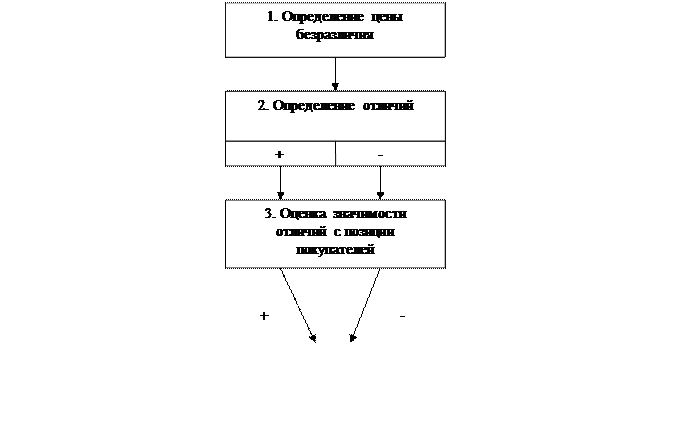 Покупатель, определяя для себя полезность покупки, в качестве отправной точки принимает цену лучших доступных ему альтернативных товаров. Затем выясняет, обладает ли предлагаемый товар какими-либо дополнительными свойствами, выгодно отличающими его от других. Если такие свойства имеются, они каким-то образом повышают общую ценность товара в глазах потребителя. Свойства, ухудшающие ценность товара, соответственно понижают его ценность в сравнении с альтернативными товарами. Как следствие, покупатель готов заплатить более высокую или низкую цену. Конечно, описанное выше поведение характерно для очень рационального и информированного покупателя, но даже покупатели, импульсивно совершающие покупки, подсознательно ищут дополнительную выгоду, за которую готовы переплатить.