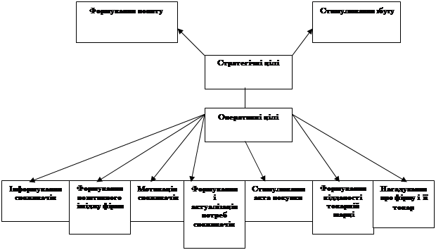 При формуванні системи маркетингових комунікацій необхідно визначити цілі комунікативної політики , які можна уявити таким чином: