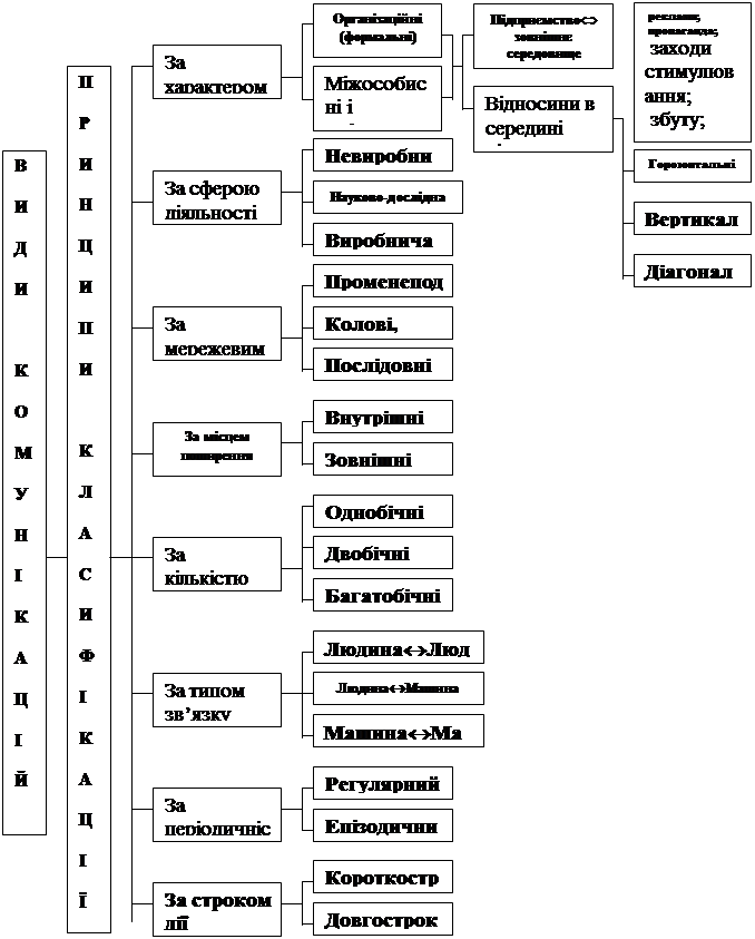 З метою систематизації теоретико-методологічних основ комунікацій, тобто поєднання соціально-психологічного та економічного аспектів, пропонується такий спосіб класифікації комунікацій (мал. 1.5).