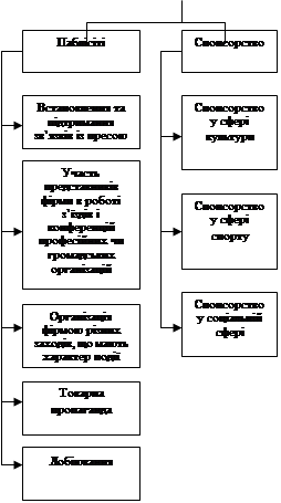 “Паблік рілейшнз” – діяльність людини або групи людей, спрямована на формування позитивного іміджу фірми у громадськості за допомогою засобів масової інформації.