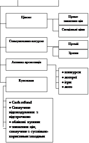 Комплекс стимулювання збуту – короткочасні примусові заходи заохочення споживачів до покупки / знижки в ціні, розпродажі, лотереї, тощо.