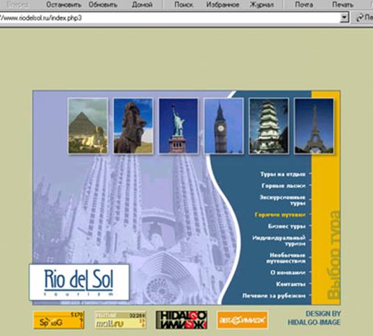 Рисунок 6. Фрагмент главной страницы агентства « Rio del Sol»