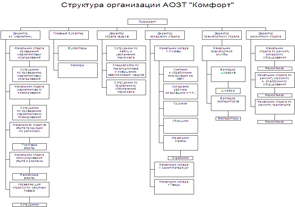 Для решения стратегических задач была создана структура фирмы и распределены все полномочия, обеспечивающие эффективные взаимоотношения между подразделениями фирмы.