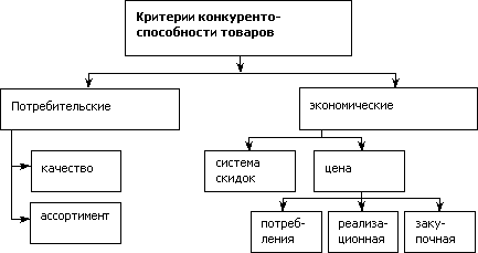 Среди потребительских критериев особое место занимает качество товаров , которое отдельные авторы считают наряду с ценой практически единственным критерием конкурентоспособности товаров. Однако такое представление о сущности конкурентоспособности, обусловленной основополагающими характеристиками товара, неполно.