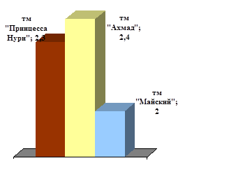 Таким образом, видно, что по уровню качества чаи «Принцесса Нури» и «Майский» равны, уровень качества чая «Ахмад» этот показатель немного выше.