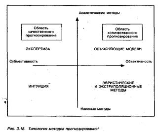 В данном случае применен метод прогнозирования, классифицированный по двум измерениям: степень свободы процесса прогнозирования от Субъективности и большей или меньшей степени аналитичности этого процесса. В крайних точках этих измерений — субъективные и объективные методы и методы наивные и причинно-следственные.