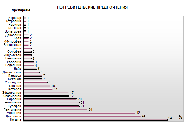 В результате проведенного исследования мы выяснили, что 94,6% населения пользуются обезболивающими препаратами.