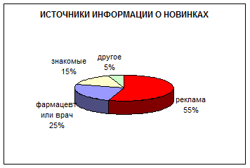 Кроме того, был проведен опрос среди врачей и фармацевтов, которых мы рассматривали как продавцов (источники информации). Этому опросу было подвергнуто 20 человек. Им были заданы вопросы в устной форме.