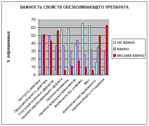 5. Определите важность для Вас следующих свойств при покупке обезболивающего препарата: