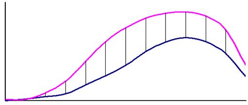 Заштрихованной площадью на этом рисунке является дополнительный объем товаров, который продается при проведении рекламной кампании. Продавая эти товары, фирма получает дополнительную прибыль. Правда часть ее уходит на рекламные затраты. Остальное является дополнительной прибылью фирмы, которую она получает в результате ведения рекламной поддержки своего товара.