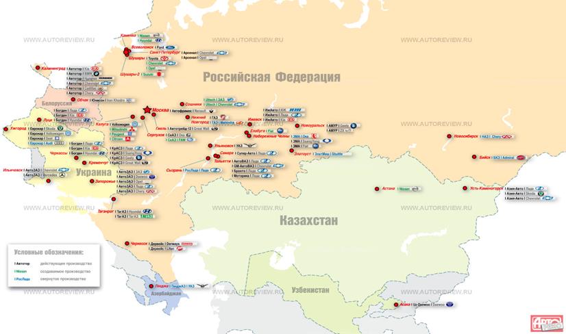 - сборка и производство иномарок на российских и совместных предприятиях на территории России;