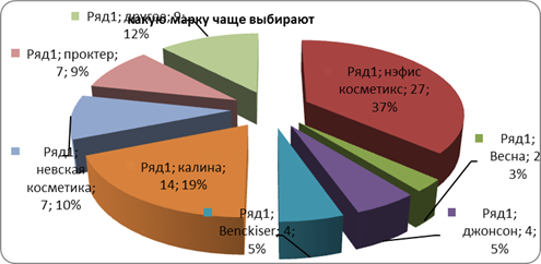 Из рис.1 видно что наибольшей популярностью среди марок бытовой химии пользуются марки Нэфис Крсметикс и Калина. Данная ситуация наблюдается несмотря на то что товары под этими марками являются товарами отечественного производства.