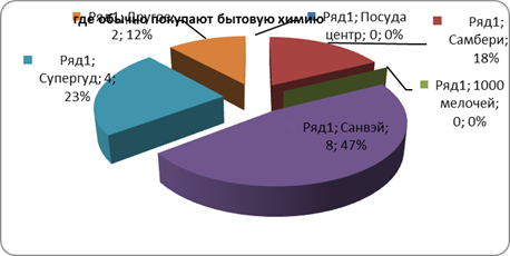 Из рис.4 можно увидеть что почти половина опрошенных покупателей приобретают товары бытовой химии в оптово – розничном центре «Санвэй» (компания занимает на рынке около 39%).