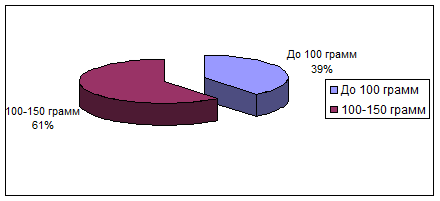 Рисунок 2.2.3 Структура ассортимента сотовых телефонов в зависимости от веса