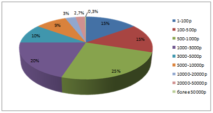 Рис. 7 - Распределение клиентов по стоимости покупок