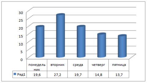 Рис. 9 - Распределение клиентов посещаемости по дням недели