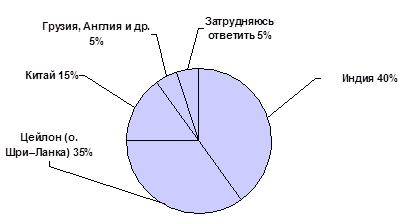 Относительно предпочитаемой страны – производителя с небольшим отрывом лидирует Индия – 40% опрошенных. На втором месте – Цейлон (о. Шри-Ланка) – 35%, далее Китай – 15%, на долю Грузии, Англии и др. приходится по 5%