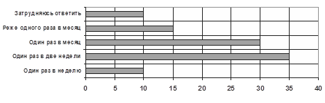 Частота совершения покупки чая во многом зависит от количества покупаемых упаковок и их объема. Большинство респондентов – 35% – покупают чай один раз в 2 недели (рис.4). Один раз в месяц его приобретают 30%, один раз в неделю – 10%, и 15% опрошенных покупают напиток реже одного раза в месяц.
