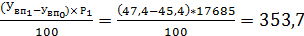 Изменение среднего уровня валовой прибыли (Увп1 – Увп0 )* Р1 /100 = (47,7-45,4)*17685/100 |