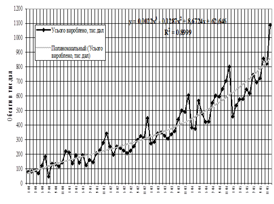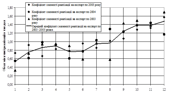 Методи досліджень: проведення горизонтального (індексно-хронологічного) та вертикального (структурно-хронологічного) аналізу реалізації продукції на експорт та внутрішній ринок, побудування алгоритмів та програм регресійного прогнозування діяльності на ПЕОМ (EXCEL-програми).