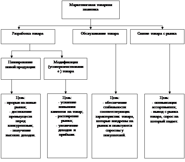 Рис 1. Составляющие части и цели маркетинговой товарной политики